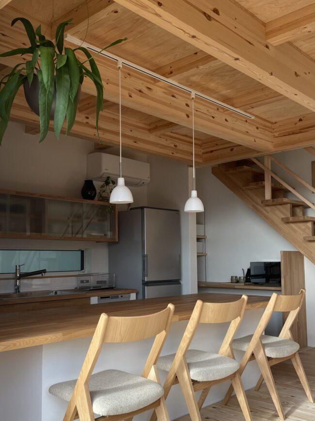 家族が自然と集まるコの字型のキッチン。